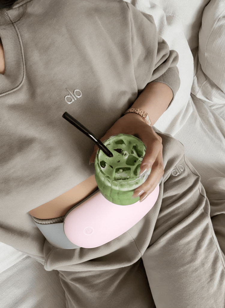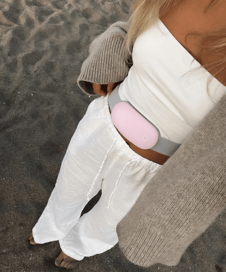 La NAYO Heat Belt combine chaleur apaisante et massage pour réduire vos crampes, où que vous soyez.
